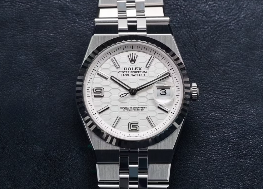 陆使型,是劳力士精准的拿捏了“一体化豪华运动表”、“复古”两大名表潮流,推出的全新系列。外观吸收了劳力士1974年推出的Oysterquartz(蚝式石英表)的“表头表链一体化”造型,并进一步增加豪华装饰,追求纤薄。虽然从盘面上的“放大镜日历”看,陆使型和日志型功能相似,但各位可以看到,陆使型,并不是“日志型PLUS”,而是劳力士的“皇家橡树”。 陆使型,首先吸引到我们的,是劳力士标志性的“